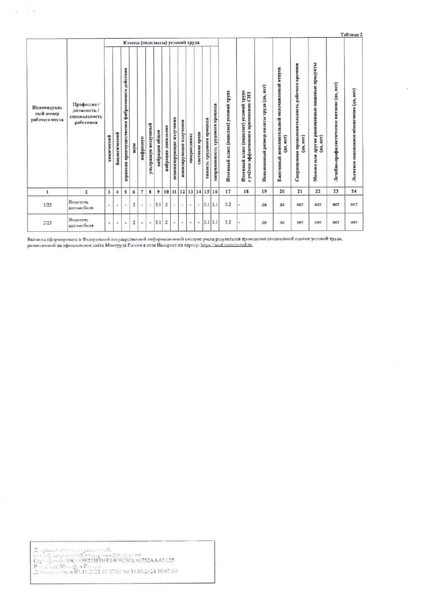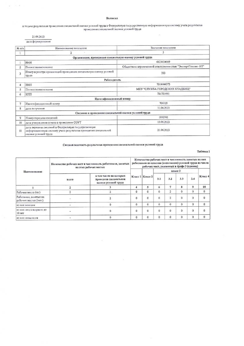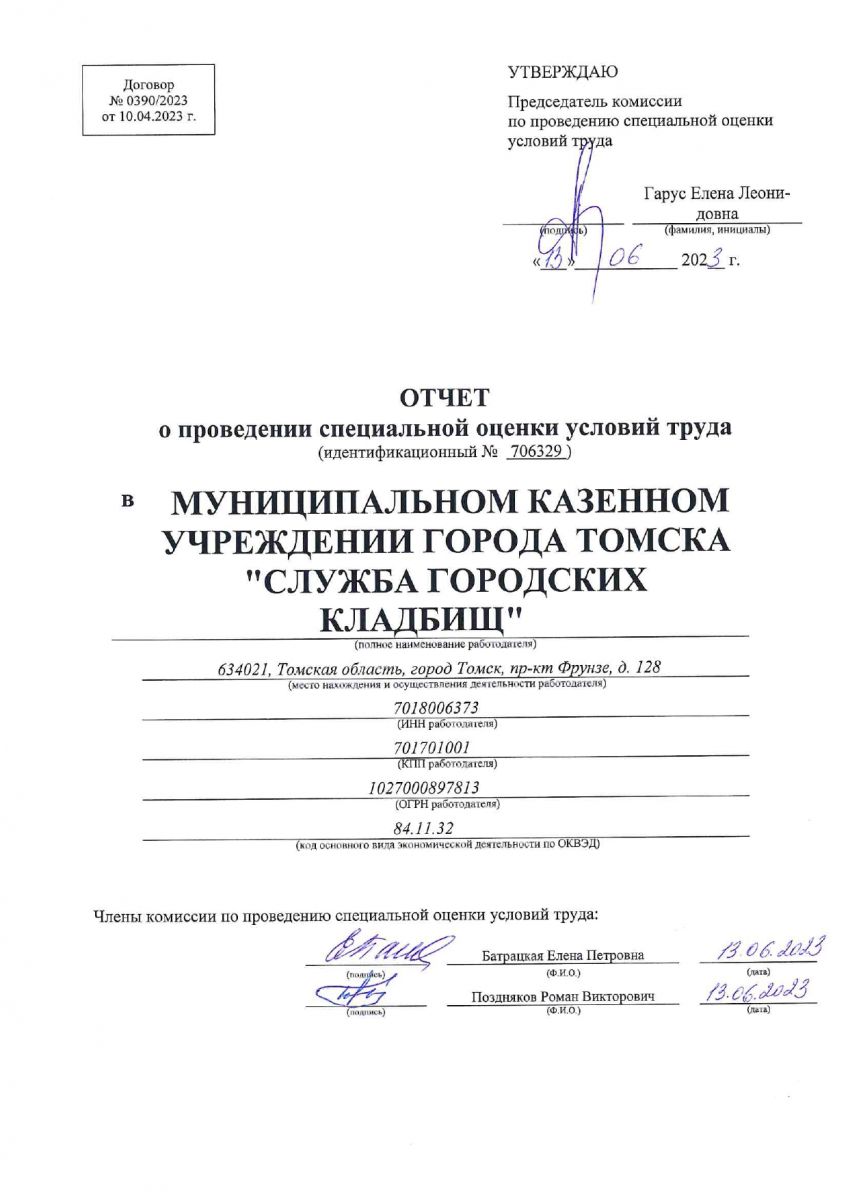 Отчет о проведении спец. оценки труда 2023 год.