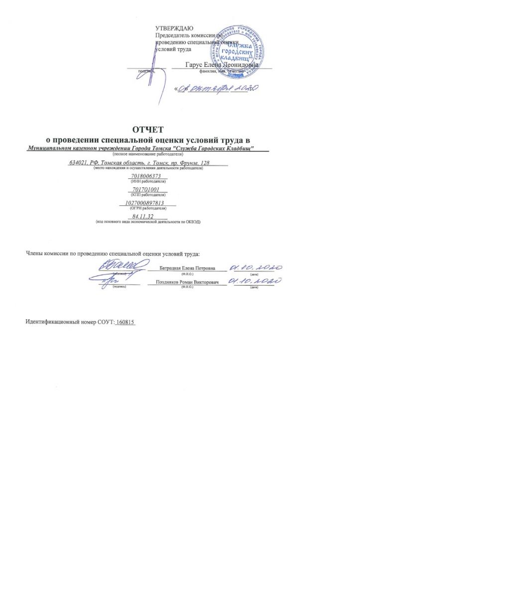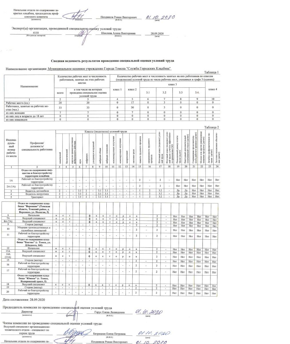 Отчет о проведении спец. оценки труда 2020 год
